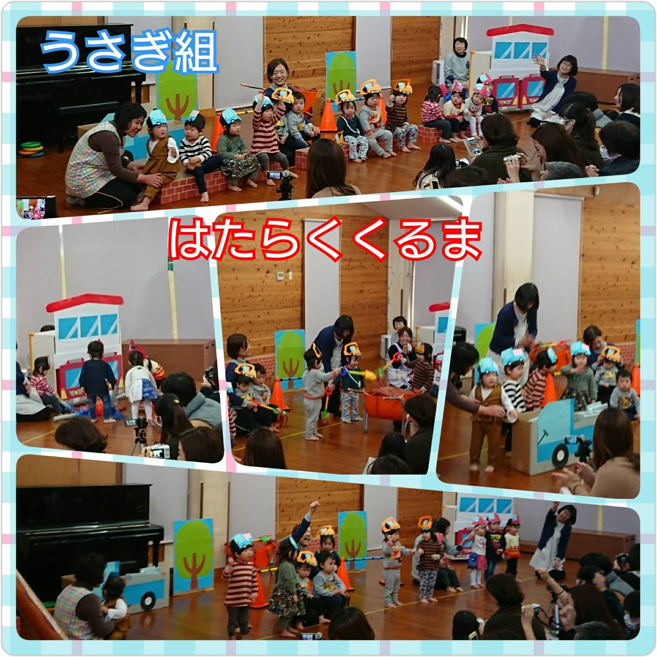 消防車やショベルカー、トラックのお仕事を頑張りました。