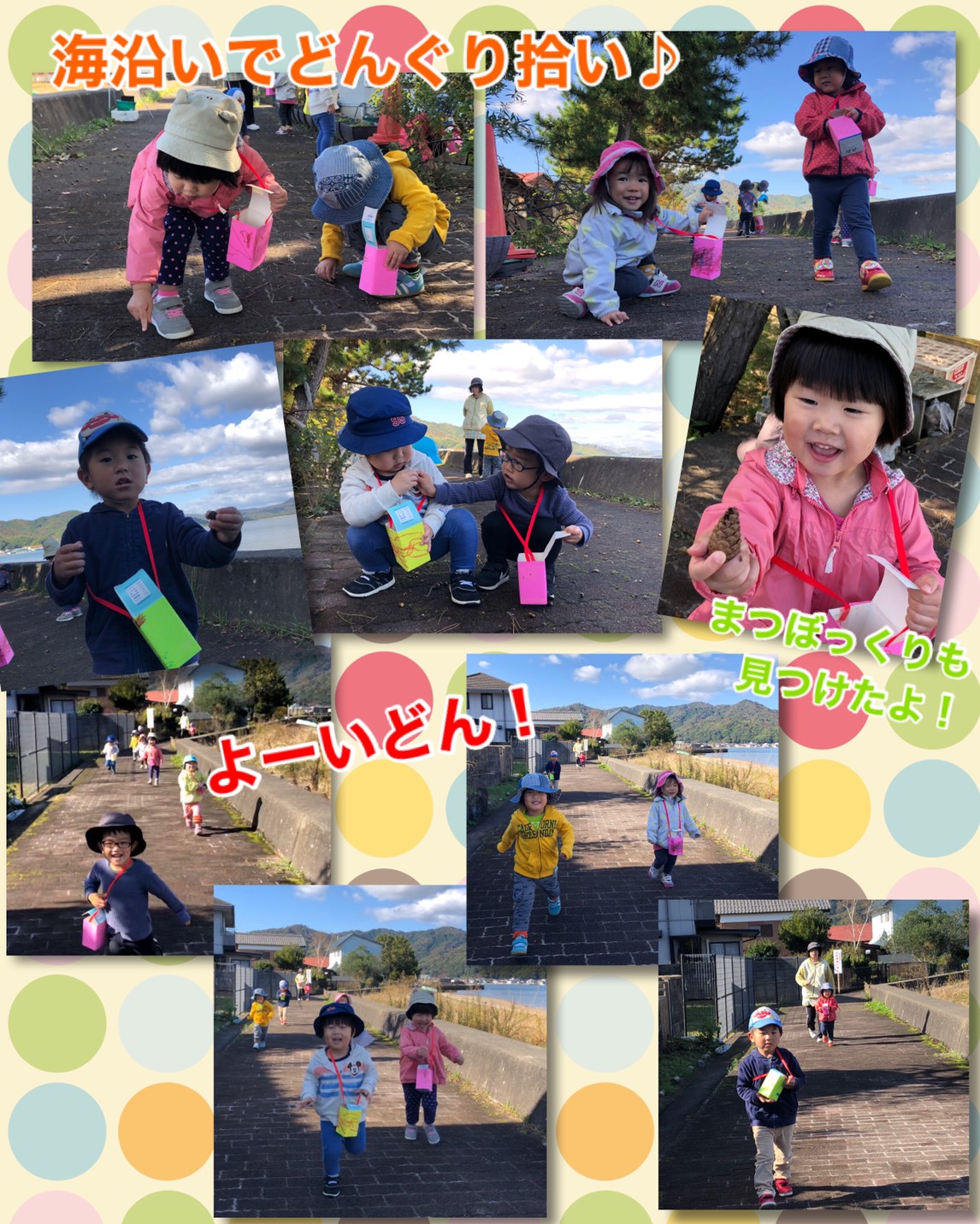 お散歩バッグを持って、どんぐり拾いに行きました。