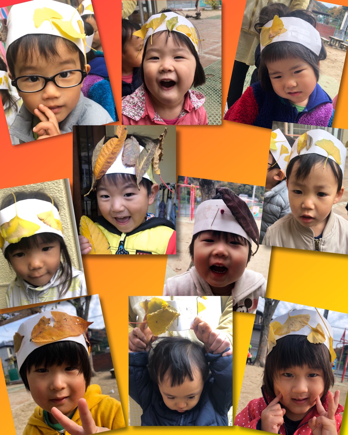 落ち葉の冠作りをしにお散歩へ行きました。