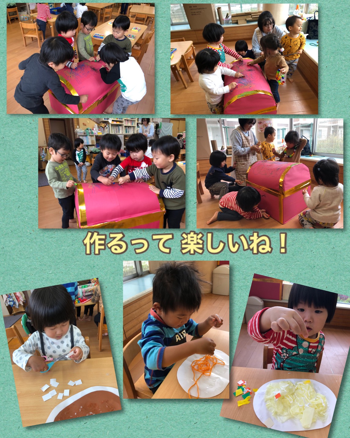 切った紙や玩具を使って