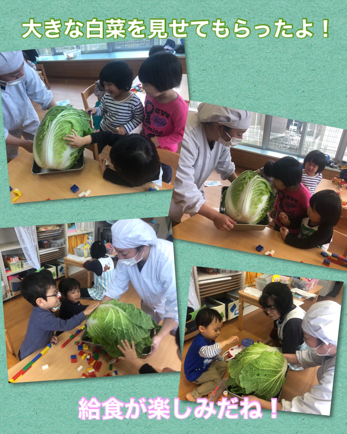 大きな白菜を見せてもらい、